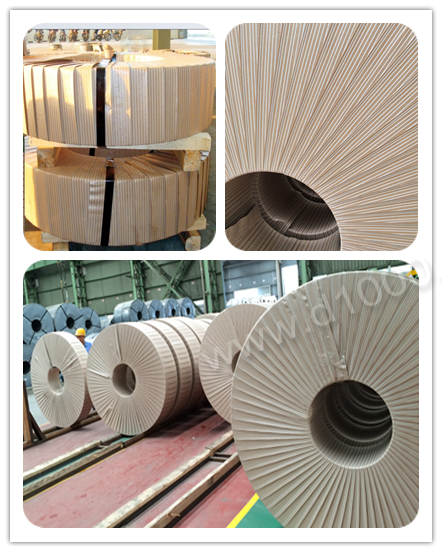 加筋皺紋紙(3 in1 fabric composite kraft paper),又稱作皺紋三復合紙,適用于所有需要高強度防水紙張包裝紙領域。由紙張及編織布復合制成,集合了紙張美觀、中性、可彩印的特性,以及塑料編織布高拉力強度、耐破度、撕裂度的特性。此外紋紙具有伸展率和摩擦力的特性,同時具有良好吸水性,與編織絲復合之后縱向拉力強度增加,包裝小規格鋼卷不易打滑,不易斷裂。皺紋夾絲復合紙被廣泛運用于金屬纏繞包裝,防水防潮、耐穿刺。配合自動纏繞打包機使用,或人工纏繞包裝。解決產品運輸倉儲過程中金屬表面磨損及腐蝕問題。廣泛被運用于帶鋼,銅材,線材等機器用和手工用的纏繞包裝。